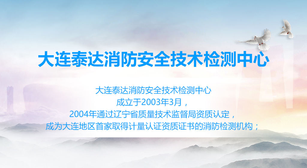 · 大連泰達消防安全技術檢測中心成立于2003年3月,是一家專注從事消防設施維護保養、消防設施檢測、電氣防火檢測、消防安全評估、雷電防護裝置檢測、防火涂料檢測、消防技術咨詢與消防培訓等專業消防技術服務的企業。